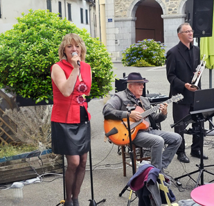 Accompagnée de la basse de Joël Lageyre et de la batterie et cajón de Patrice Haillet, elle crée une belle harmonie musicale.